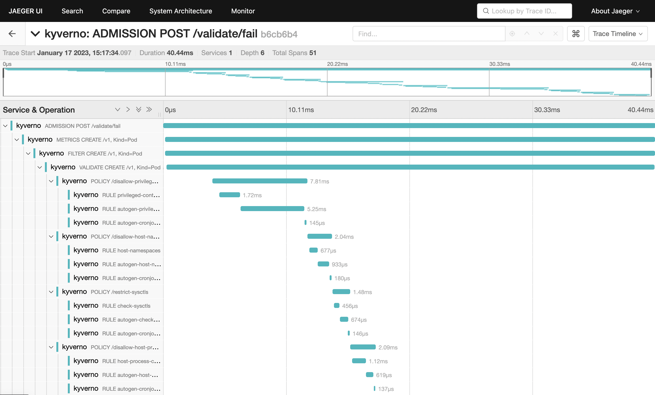 kyverno, every trace defines a service name and all traces coming from Kyverno will use thekyvernoservice name - Operation: